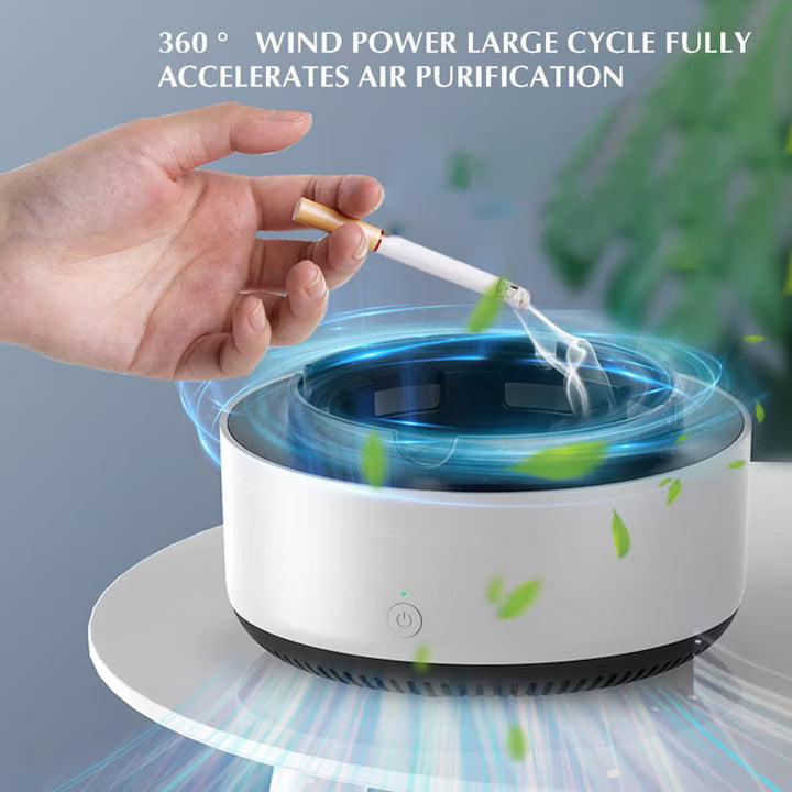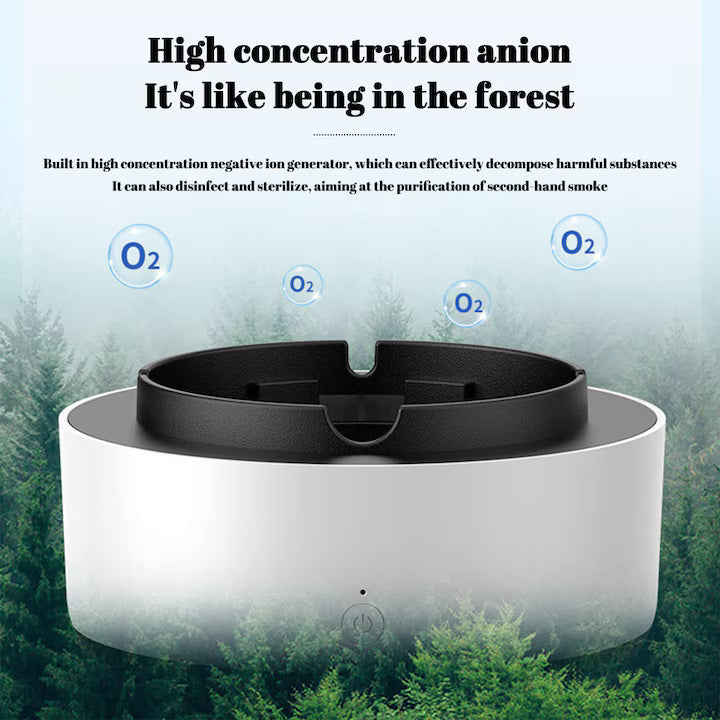 Scrumiera electrica, cu aspiratie directa, rasina epoxidica anti-topire, purificator de aer cu ioni negativi, odorizant pentru eliminarea mirosului, fumului, pentru casa, birou, masina, functioneaza cu baterii, cu oprire automata, Alb